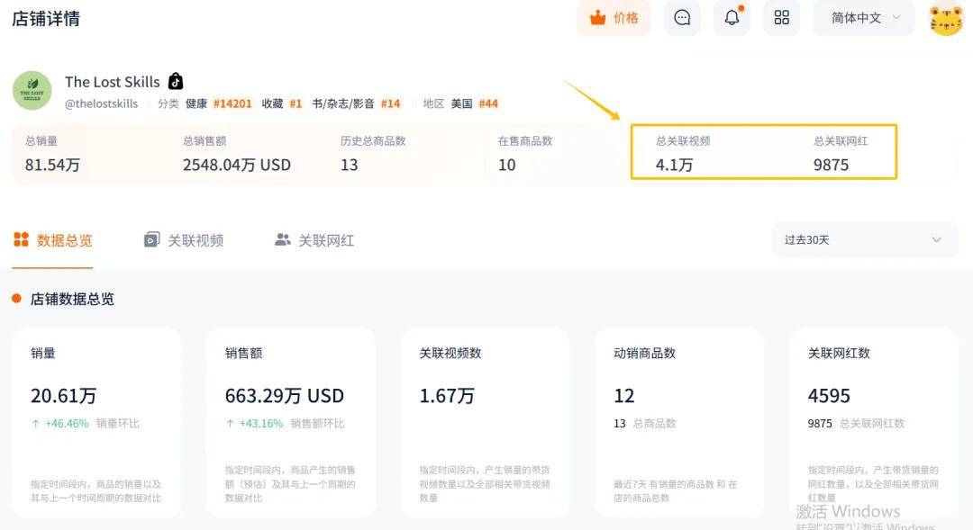 根据Nox聚星的数据显示,其在TikTok的关联广告视频多达4.1万则,关联网红9875名。