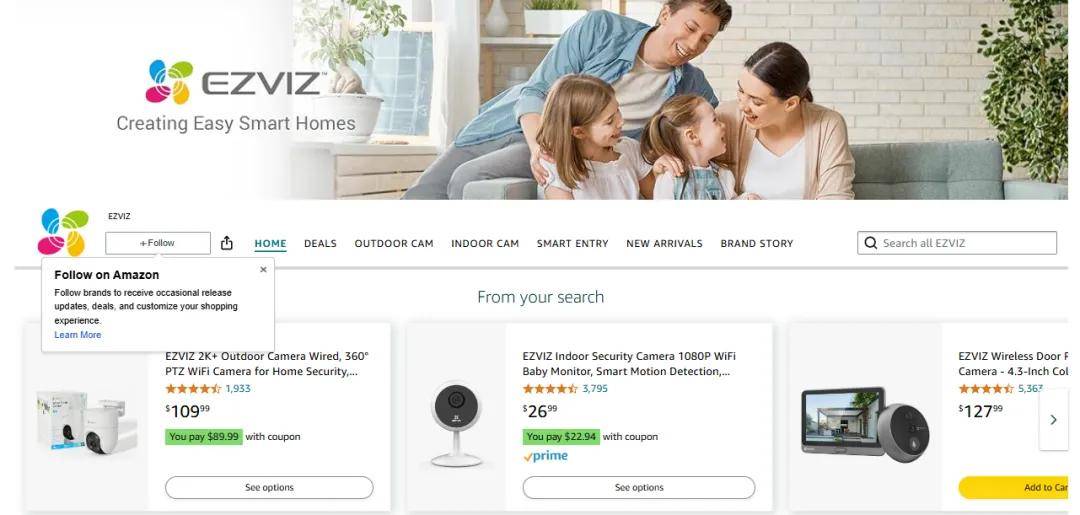 在营销策略上,EZVIZ 采用线上线下协同的方式。线上,入驻亚马逊、eBay、Shopee、Lazada 等国际电商平台,借助平台的流量和影响力,触达全球多元消费群体。