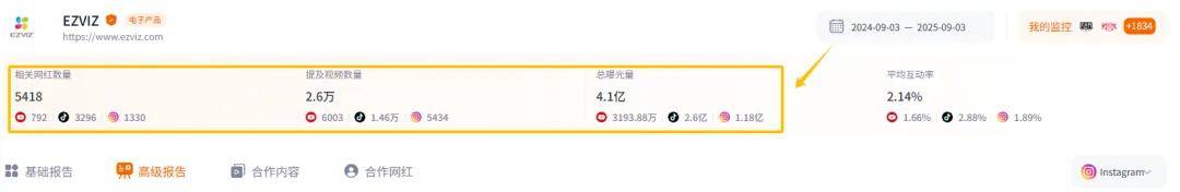 根据Nox聚星平台的数据显示,EZVIZ一年内合作的网红多达5k+,而与这些网红合作的带货视频,为其创造了惊人的4亿+曝光!