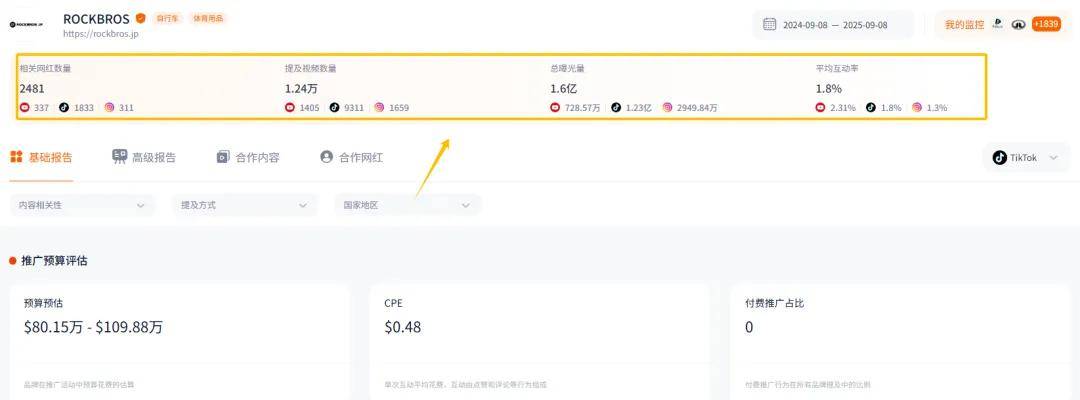 Rockbros的广告发布频率也十分优秀,平均每周发布178条视频,每月发布764条视频。
