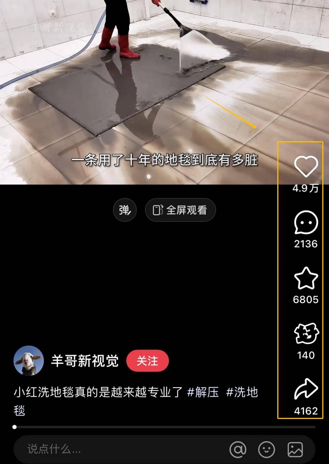而这也是国内一直流行的“解压视频”,比如一条“沉浸式洗地毯”视频能在小红书获赞近5w。