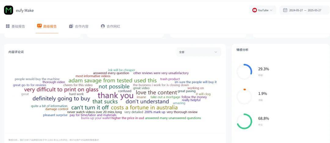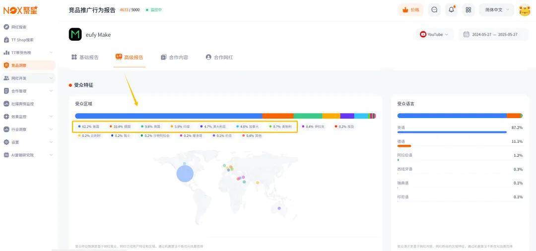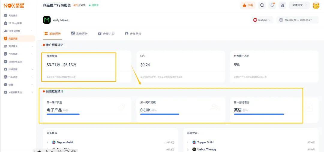 而根据Nox聚星的数据显示,eufyMake 更偏好在 YouTube 上进行网红营销,这是因为 YouTube 平台渗透率高、科技博主影响力强,能最大化内容传播ROI。