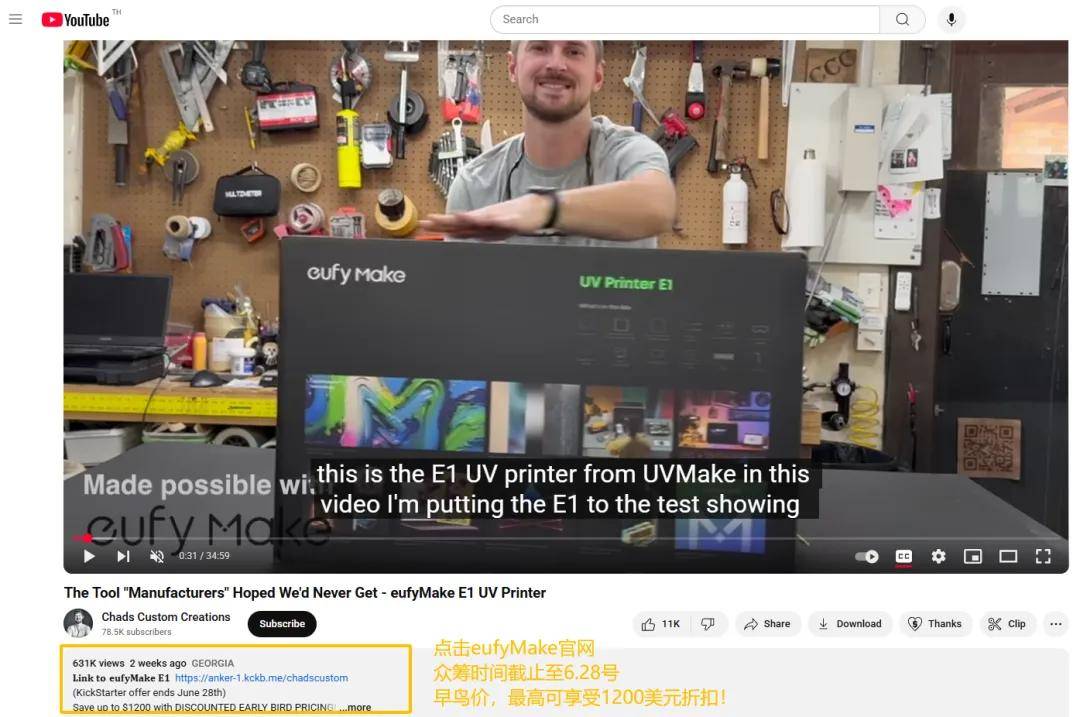 其中,最值得注意的是其与 DIY 大V@ChadsCustomCreations的合作,收获了1w+的点赞!大V还把众筹链接放在视频描述与评论区置顶里,强调了优先购买的优惠,无疑给 eufyMake 带来了巨大的流量。