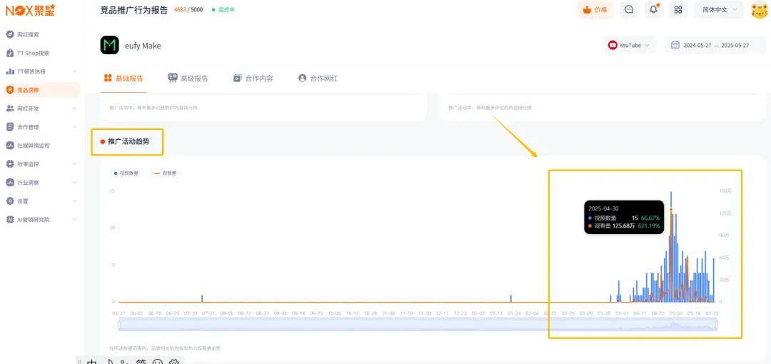 仔细看它的推广活动趋势就可以发现,原来早在上线之前 eufyMake 就已经开始酝酿造势,并在产品上线当天达到了推广峰值。