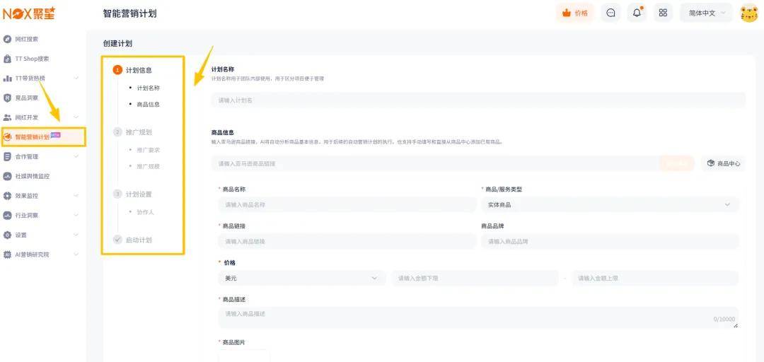 AI自动化网红营销:只需输入产品链接,AI会结合产品信息与推广需求,智能生成完整网红营销创意计划。包括红人层级配比(头部 / 腰部 / 微型红人如何搭配)、渠道资源分配(YouTube/TikTok 等平台投入占比)、创意方向(内容形式、卖点传递方式),以及详细的执行时间表。