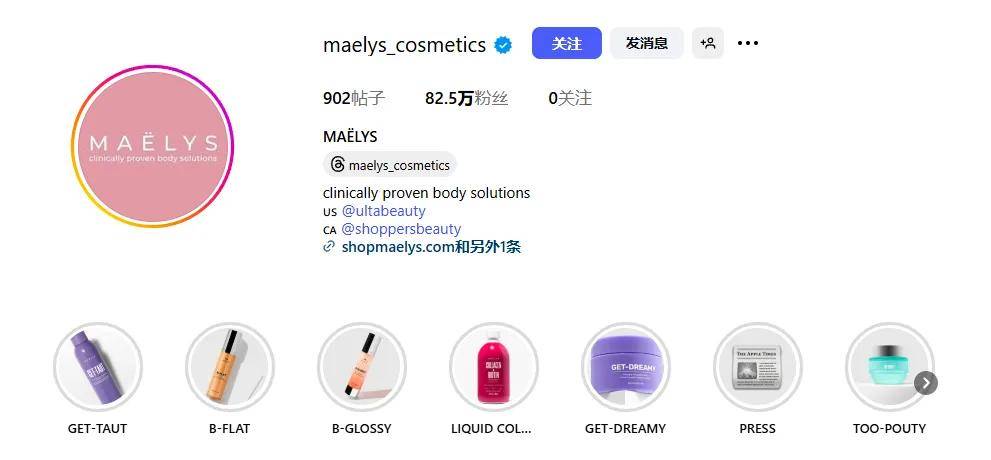 MAËLYS深谙美妆消费始于信任的逻辑,以社交媒体为核心引擎,构建起品牌-红人-用户的三方信任生态。在Instagram与TikTok两大核心平台,品牌分别积累近82.5万与20万粉丝,通过视觉化内容与真实证言击穿用户心智。