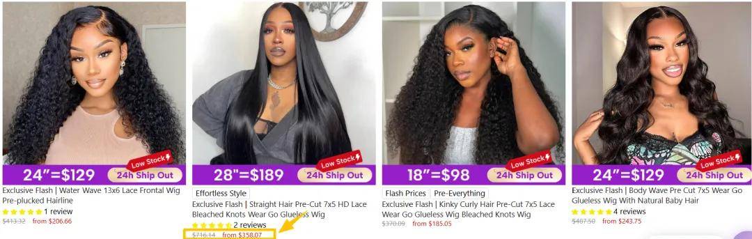 而 OQ Hair 在这样的市场大环境下,在出海之初便决心定位高端市场,其热销产品定价均在 100 美元以上,部分单品售价超过 300 美元。