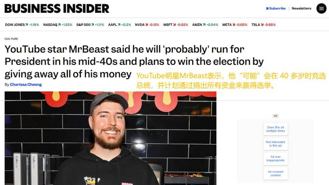 更离奇的是,据外媒BUSINESS INSIDER称,这位撒钱哥未来还”打算“竞选美国总统!
