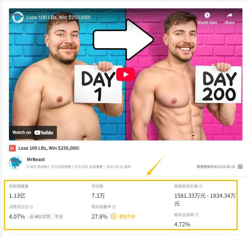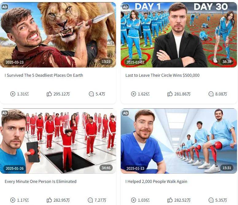 总之,Mr Beast的视频总能收获超高人气。