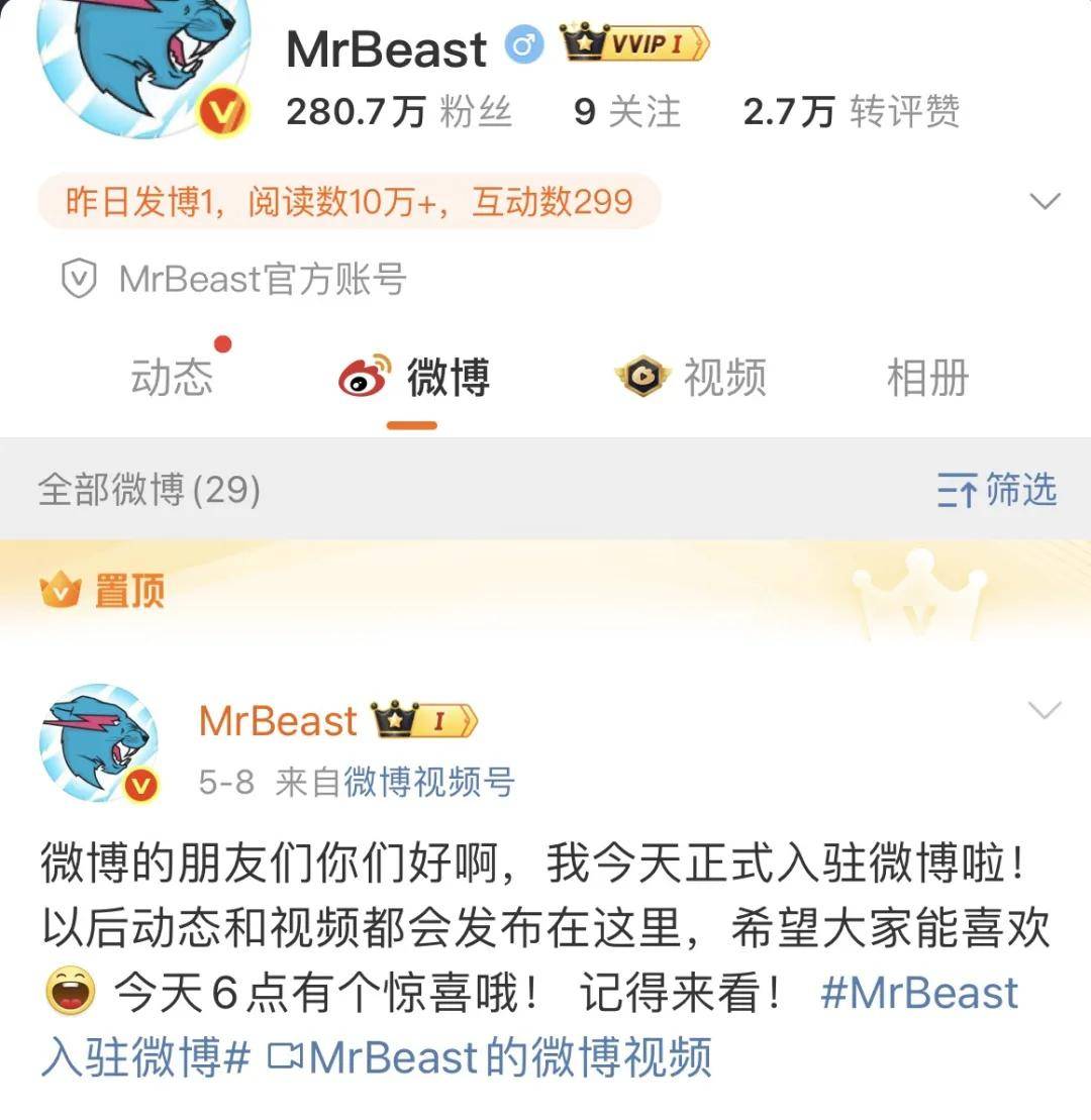 而这巨大的流量显然已让全球顶流坐不住了——年仅27岁就坐拥5亿+粉丝、公认的“油管之王”Mr Beast (野兽先生),人称撒钱哥,也要来中国了。