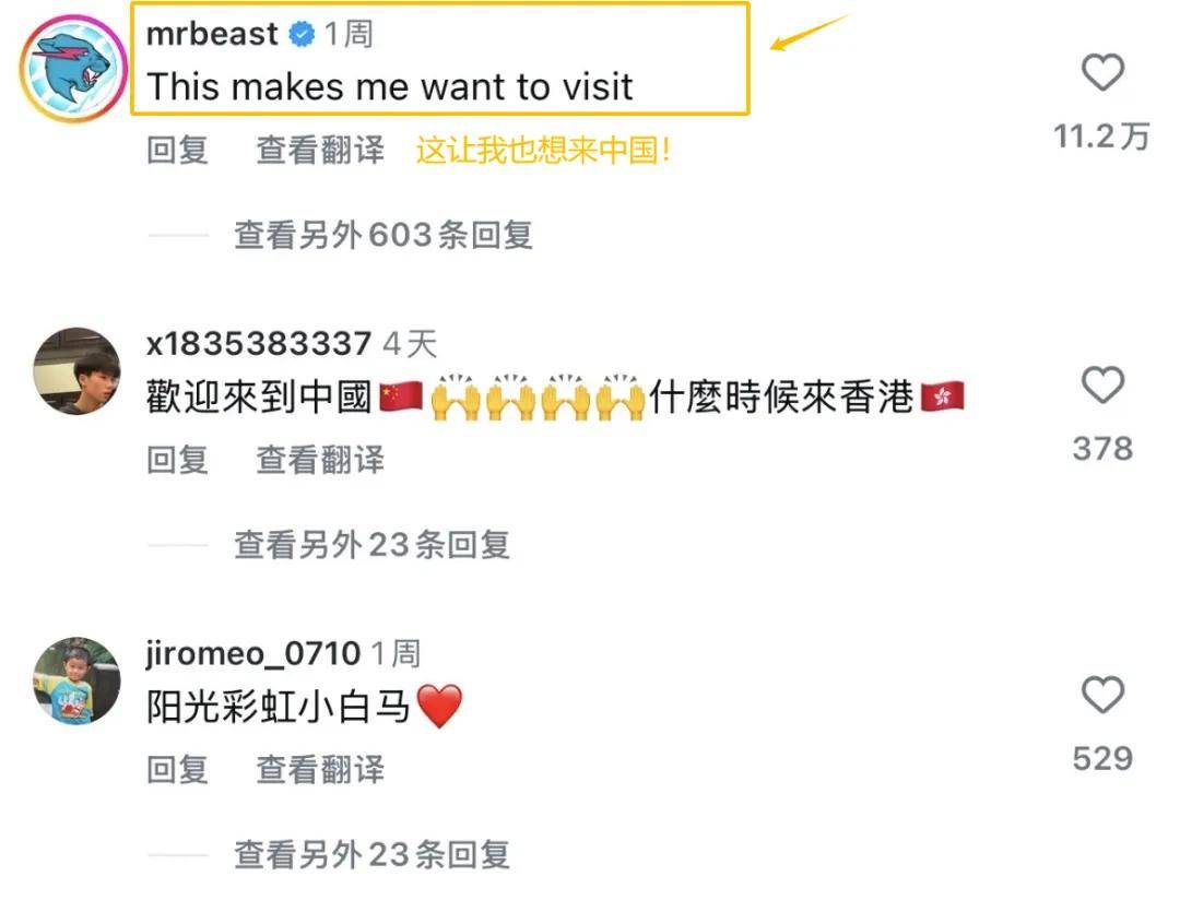 更有眼尖网友发现,Mr Beast本尊亲自现身甲亢哥相关视频评论区,留言表达对中国之行的兴趣!