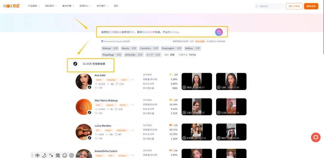 而通过Nox平台,只需用中文描述,即可快速找到合适的巴西网红,帮您带货!
