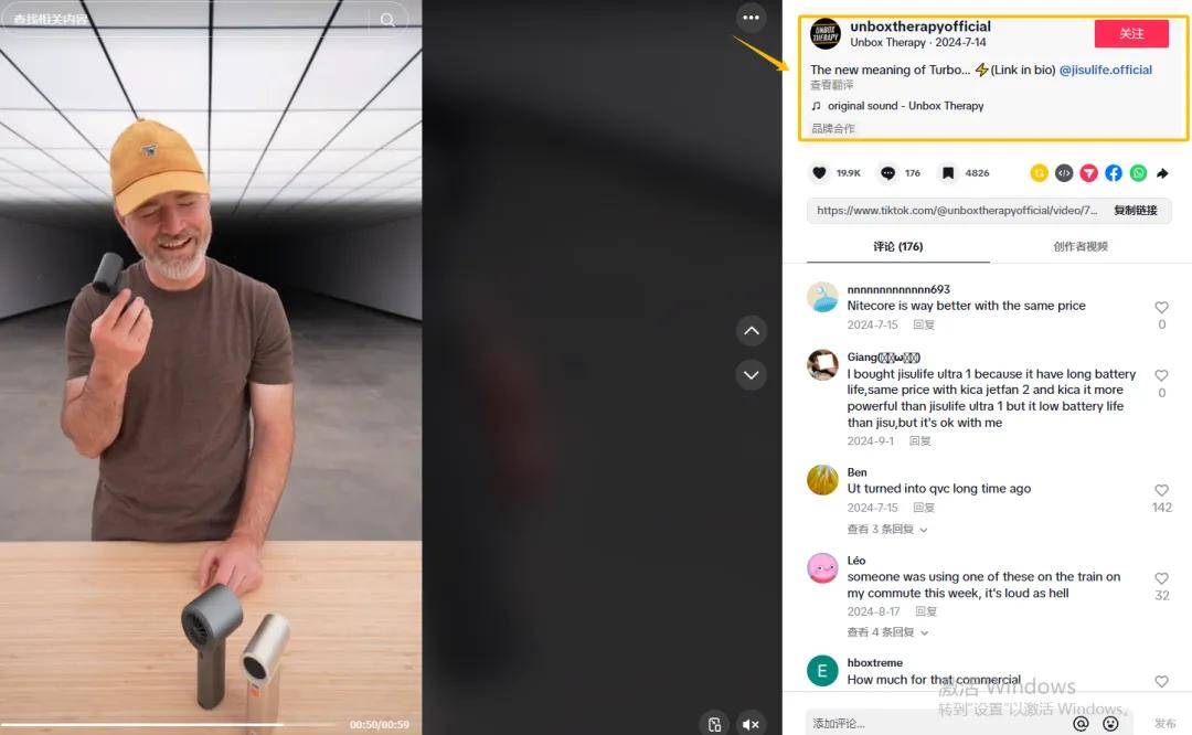同时,几素还与科技大V兼头部网红@unboxtherapyofficial合作,通过专业的产品测评和展示,为产品背书,向目标用户全面呈现了风扇的强大功能和优势。