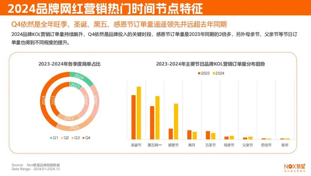 Q4持续作为全年旺季,圣诞、黑五、感恩节订单量远超2023年同期,感恩节订单量更达2023年同期两倍多。