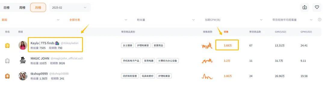 比如,TikTok的网红Kayla凭借7千粉丝,以一己之力创造了3.68万销量,成为今年二月带货销量最高的网红。