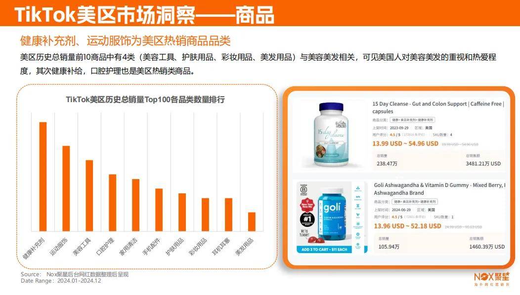 商品层面,时尚美容类产品主导热销榜,彩妆、护肤、美容工具占据头部位置,口腔护理、美发用品、健康补充类也深受消费者喜爱。