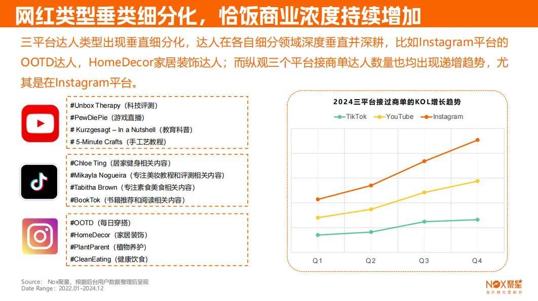 2024年,海外网红生态呈现垂类细分与商业化加深的特征。