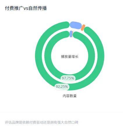 (2)新增付费推广vs自然传播功能,以 “播放量增长”、“内容数量” 为核心维度,直观展示付费推广、自然传播在这两个维度中的占比,帮品牌清晰判断自身 / 竞对是付费依赖型还是自然口碑型。