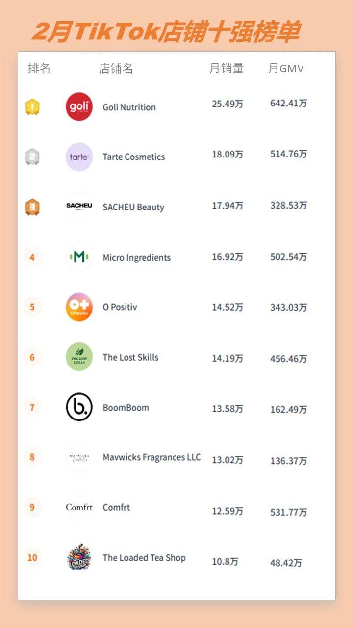 #3 2月TikTok小店GMV榜单