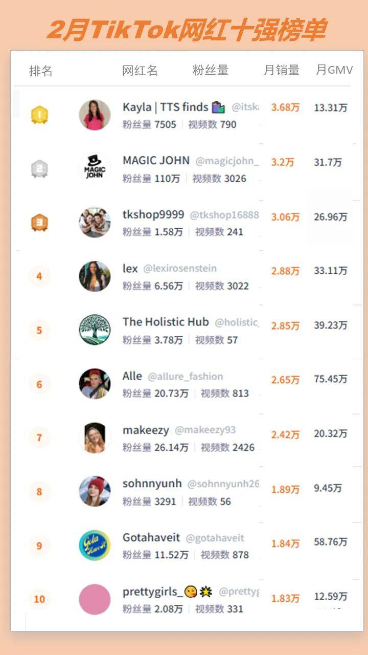 #1 2月TikTok网红GMV榜单
