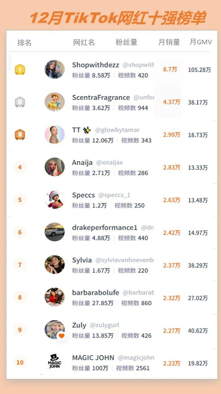 为在2024年帮助更多出海卖家精准洞察海外市场,全球领先的海外网红营销云Nox聚星基于平台【TT带货热榜】功能,整理并发布《2024年12月TikTok带货热榜十强榜单》!