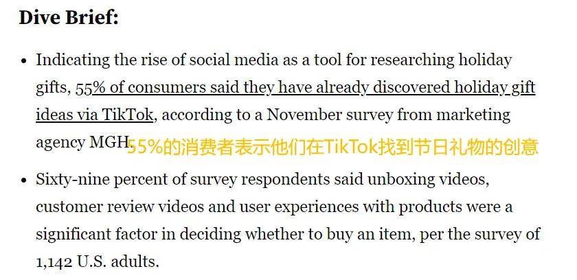 这一数据也表明了越来越多消费者正通过TikTok和网红推荐来选购节日礼物。